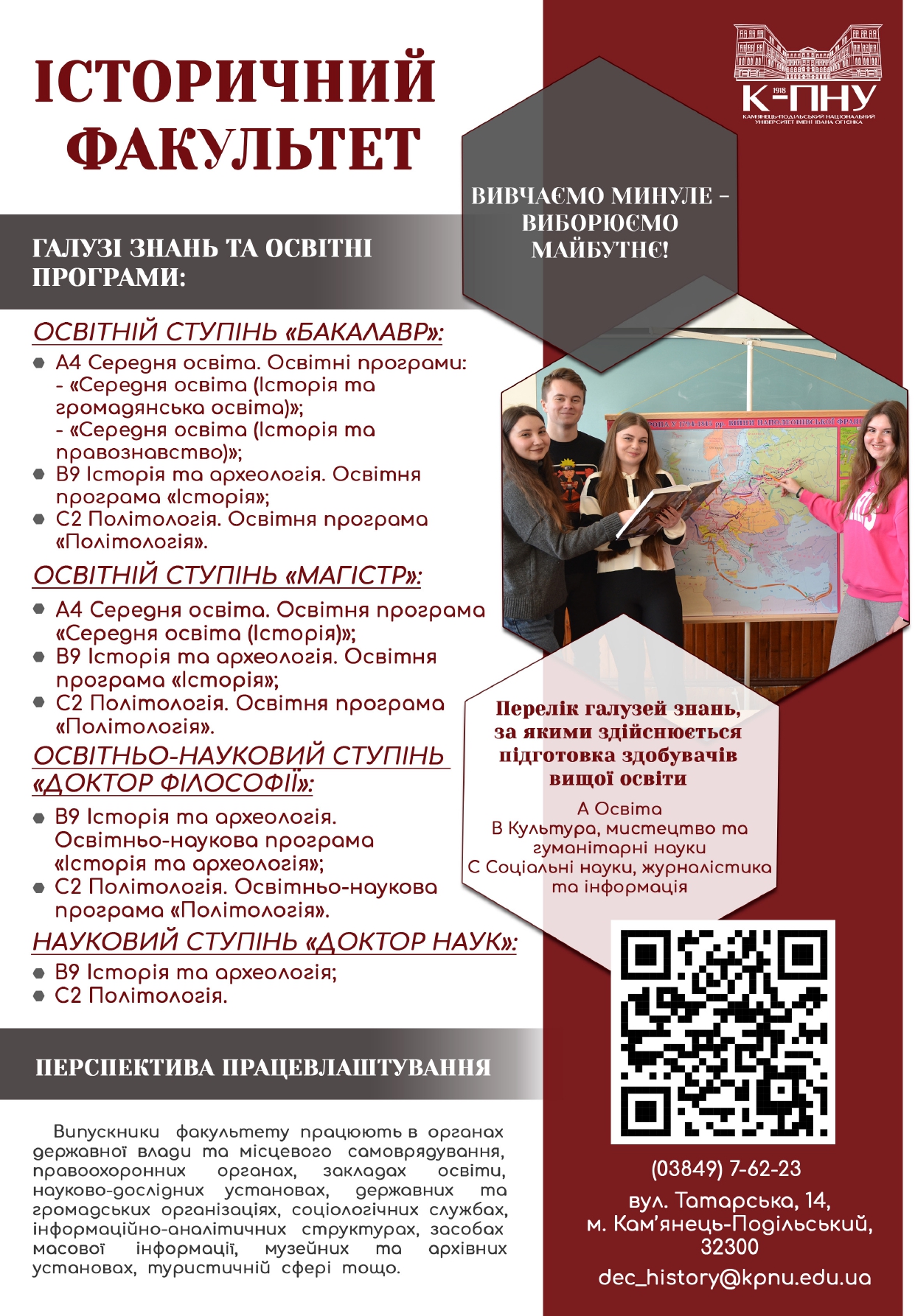 Кам’янець-Подільський національний університет імені Івана Огієнка як один з інноваційних освітніх і наукових центрів Поділля та України радо відчиняє перед вами свої двері.