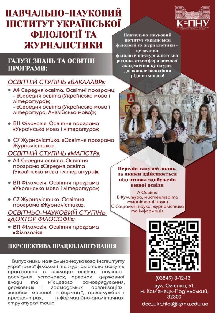 Шановні абітурієнти! Навчально-науковий інститут української філології та журналістики Кам’янець-Подільського національного університету імені Івана Огієнка запрошує на день відкритих дверей, який відбудеться 5 травня о 13:00.