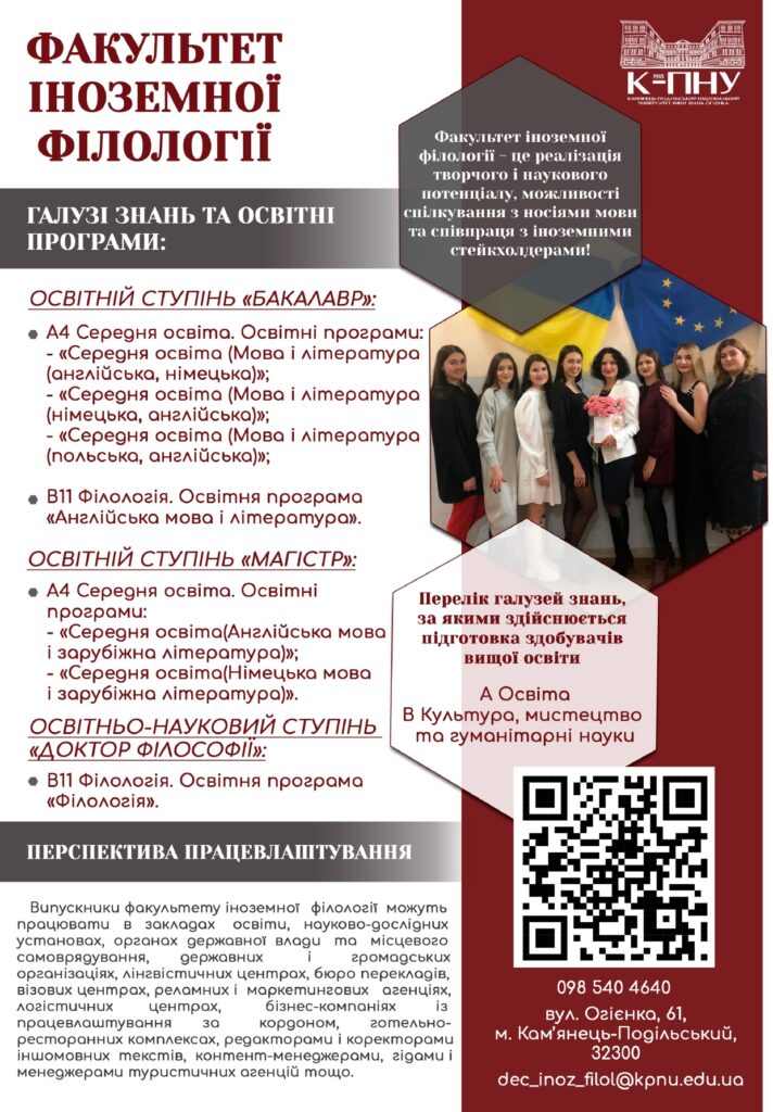 Шановні абітурієнти! Факультет іноземної філології Кам’янець-Подільського національного університету імені Івана Огієнка запрошує на день відкритих дверей, який відбудеться 12 травня о 15:00.