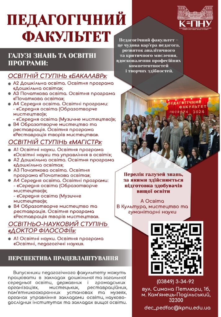 Шановні абітурієнти! Педагогічний факультет Кам’янець-Подільського національного університету імені Івана Огієнка запрошує на день відкритих дверей, який відбудеться 6 квітня о 14:00.