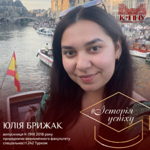 Юлія Брижак Випускниця К-ПНУ 2018 року природничо-економічного факультету спеціальності 242 Туризм. Адміністратор туристичної агенції «Аурінія». |