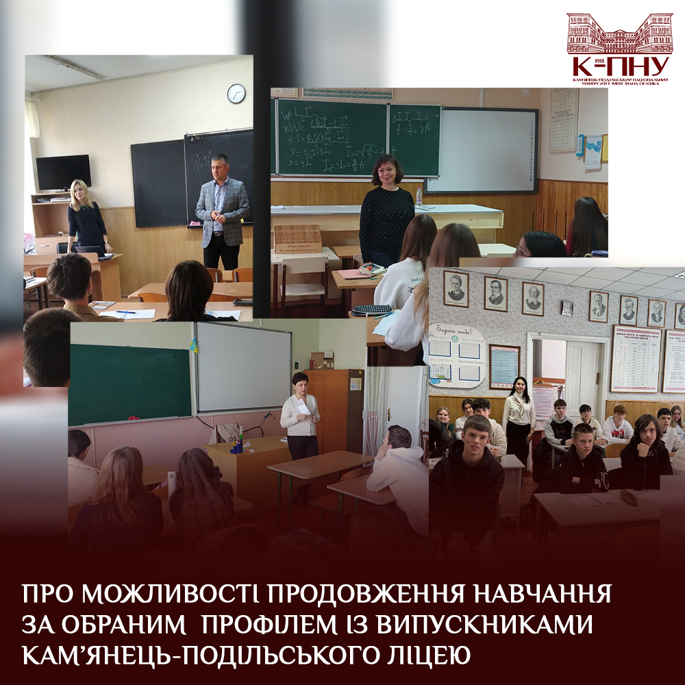 Цього тижня науково-педагогічні працівники К-ПНУ зустрілися з випускниками Кам’янець-Подільського ліцею. Цей навчальний заклад має таку особливість, як профільне навчання. Уже в старших класах учні можуть обрати напрям, із яким бажають у майбутньому пов’язати життя та зробити перші кроки в самостійній науково-практичній і дослідницько-пошуковій діяльності.