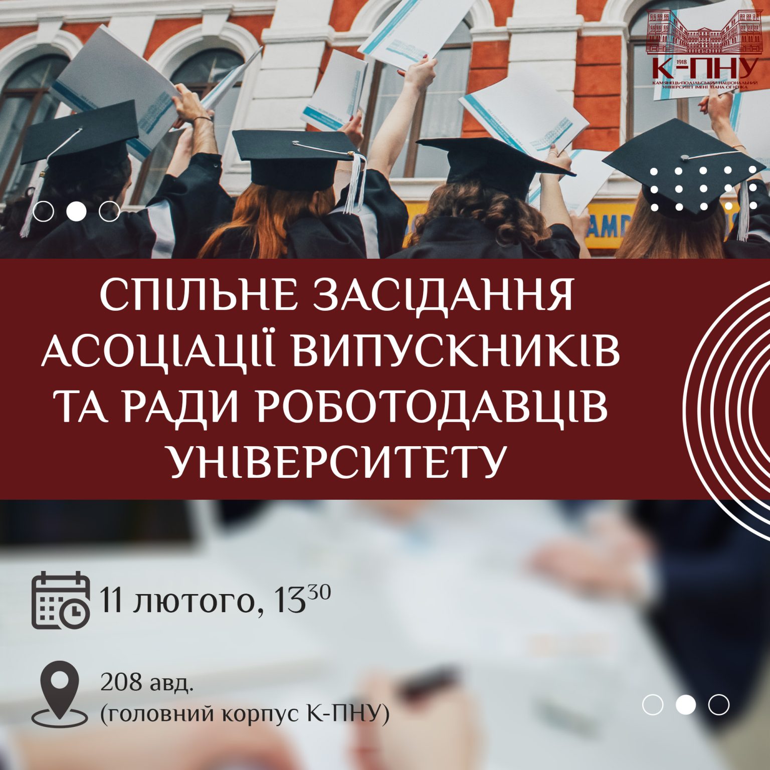 11 лютого о 13:30 в К-ПНУ (208 авд. головного корпусу) відбудеться засідання Ради Асоціації випускників університету.